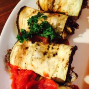 Aubergineruller med ricotta og quinoa/eller oksekød