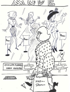 Jeg prøver alle butikker på Vesterbrogade og blev mødt med beskeden: ”vi har desværre ikke din størrelse”. Jeg måtte gå ind i de butikker, jeg ellers aldrig går ind i. Pludselig står jeg foran Maria Sanders butik. Dette flotte menneske, som jeg tit har set i Se og Hør, tør jeg gå der ind? Jeg gør det, jeg har da en sum penge med. Jeg træder ind i en eventyrverden, rødt velour, store spejle sofaer, sænket belysning, jeg bliver mere og mere nervøs. Frem træder det flotteste kvindemenneske jeg nogensinde har set, høj, slank, sort krøllet hår, flot makeup, og store røde læber. Hvad vil dette smukke væsen dog sige til mig? Lille fede med vådt hår, ligner nærmest en, der skal ud og sejle kapsejlads.