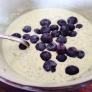 Det hele mikses sammen og stilles i køleskabet i min. 15 minutter, så chia-frøene kan “suge” væsken. Hvis du vil spare tiden om morgenen, kan grøden med fordel røres sammen aftenen før og stilles i køleskabet. Grøden kan nydes som den er, men bliver kun bedre af at blive toppet med fx blåbær eller granatæblekerner.
