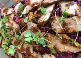 Barbecue marineret svinemørbrad med spidskålsalat