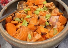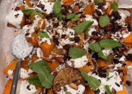 Sød kartoffelsalat med Miso & appelsin tahini og skalotteløg