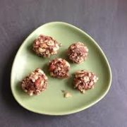 Kør de afkølede kikærter med dadler, peanutbutter og kakao i en foodprocesser, så der bliver en homogen masse. (Tilsæt evt. lidt kaffe, hvis massen ikke er klistret nok). Rul til kugler i mudret størrelse og afslut med at rulle kuglerne i hasselnøddeflager. Stilles på køl i et par timer. Opbevares på køl og kan holde sig et par dage. Kan fryses