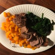 Lammeculotte med søde kartofler og dampede spinat