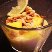 Bland reven limeskal og limesaft sammen. Kom mangotern og nødder oven på yoghurten