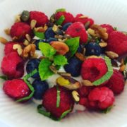 Jeg har friske hindbær i haven og denne ret med skyr er en af mine hofretter her i sommeren