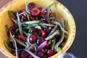 Grøn bønne og kirsebær salat med citron/ingefær olivenolie
