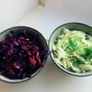 Variation i stedet for chili og sesamfrø blandes de øvrige ingredienser med rødbedesaft og ingefær. Jeg har blandet denne med revet rødkål.
