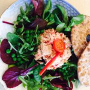 Anret tunsalaten sammen med den blandede salat og hæld en olie dressing over. Spis f.eks. knækbrød til.