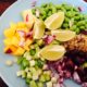 Bland dem sammen med de kogte quinoa, hvidløg, olie og mel. Blend butterbeansene til en glat mos i en minihakker. Rør nu det hele godt sammen til en ‘fars’, og smag det til med salt og peber. Skyl og tør grønkålen, og hak den fint. Kom dem i skålen, og rør dem sammen med quinoa-farsen. Fugt dine hænder, og form 4-5 bøffer. Steg dem i olivenolie på en pande, 5 minutter på hver side, indtil de er gyldne og sprøde.